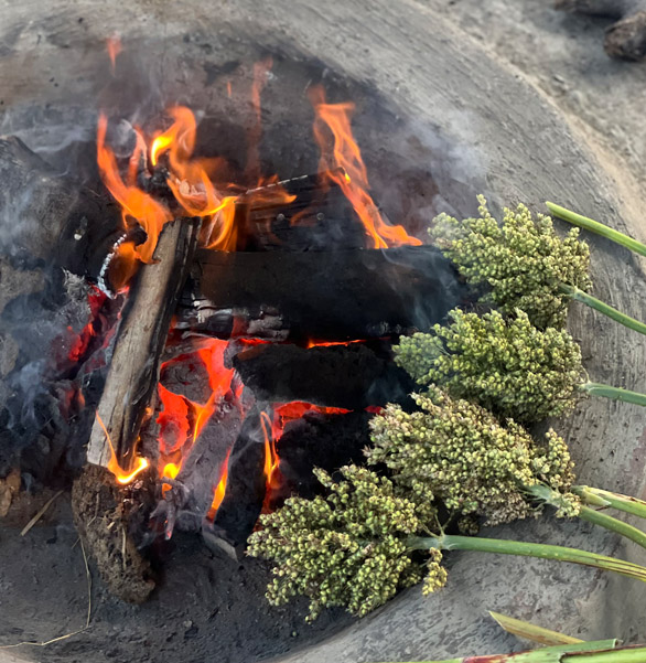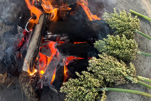 Hurda – Jawar crop (Sorghum) grows in most of the regions of Maharashtra. Somewhere in month of December to January tender stalks of Jawar (Sorghum) are ready in farms.We grow specific variety of Jawar i.e. Surti Jawar / Gul bhendi variety which is famous for its taste. The tender Jawar (Sorghum) stalks are roasted / barbecued in hot coal ashes & then the roasted tender Jawar (Sorghum) is called as HURDA. HURDA is then served along with Chutney (desiccated coconut garlic with dried red chilli). Hurda is really very tasty . We conduct Hurda Parties during December to February for small and large groups. Please contact us for more information.. We’re are ready to serve hot, tender, sweet hurda for you.